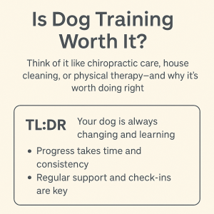 Is dog training is worth it? Learn how it compares to chiropractic care, PT, house cleaning, and more—and why it's never one-and-done.